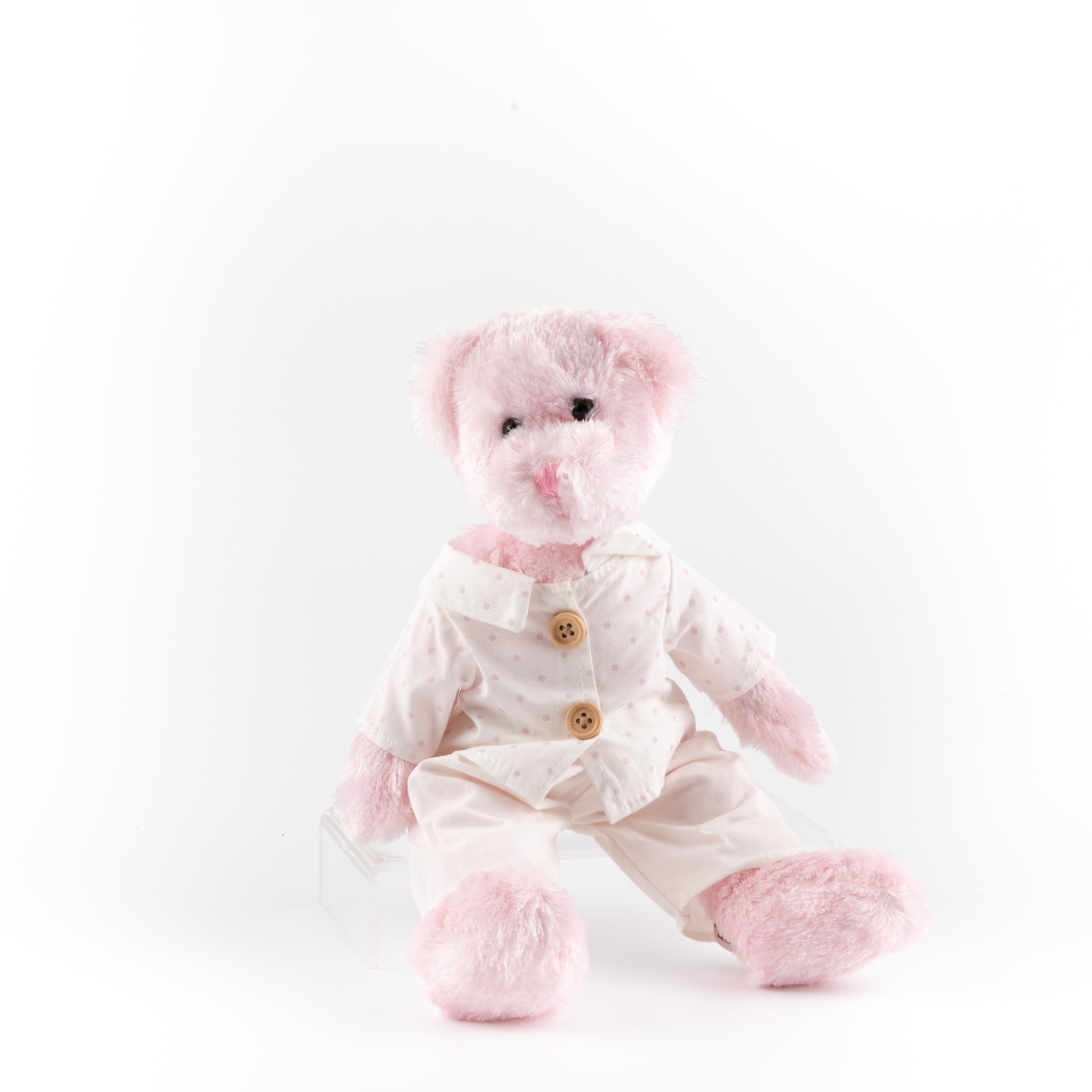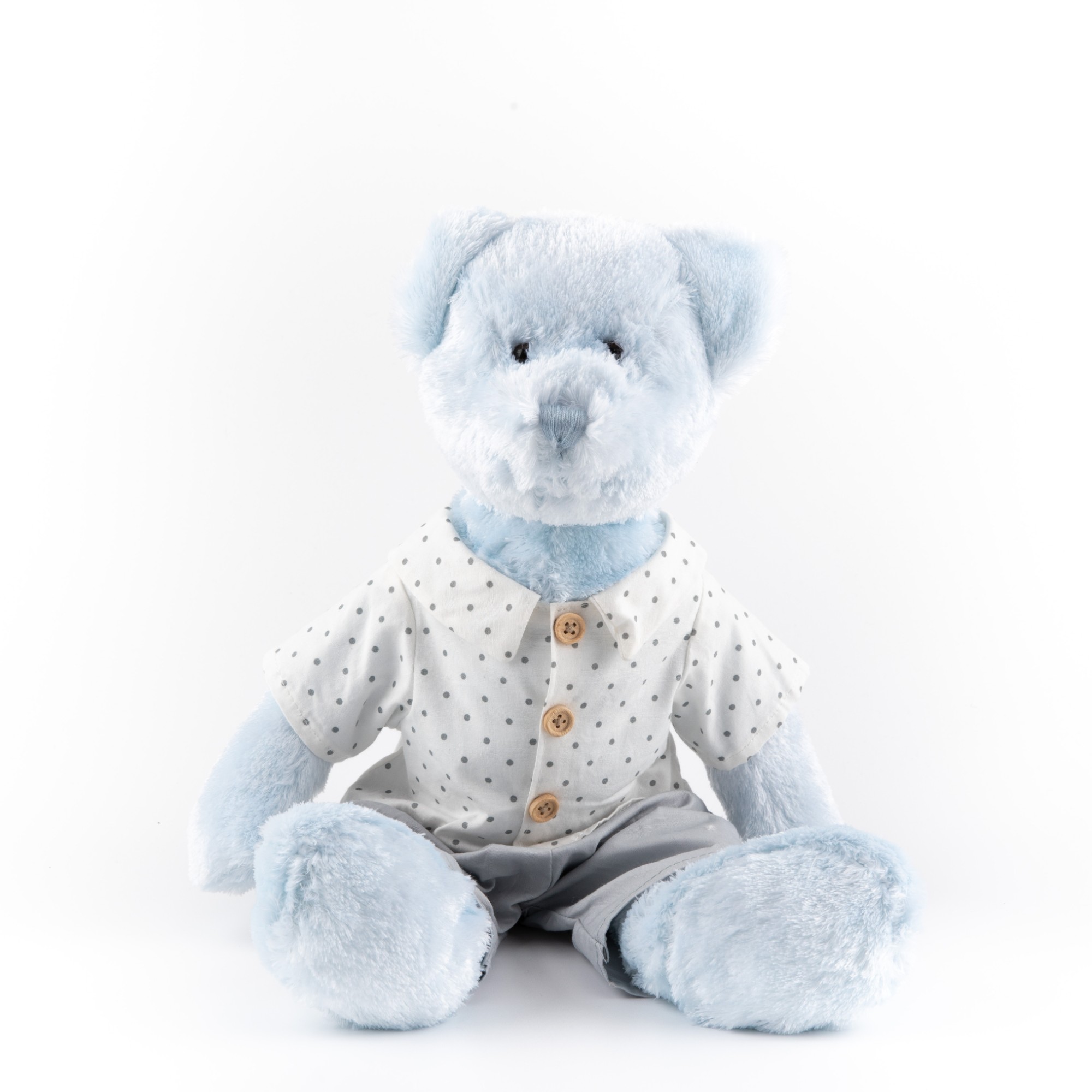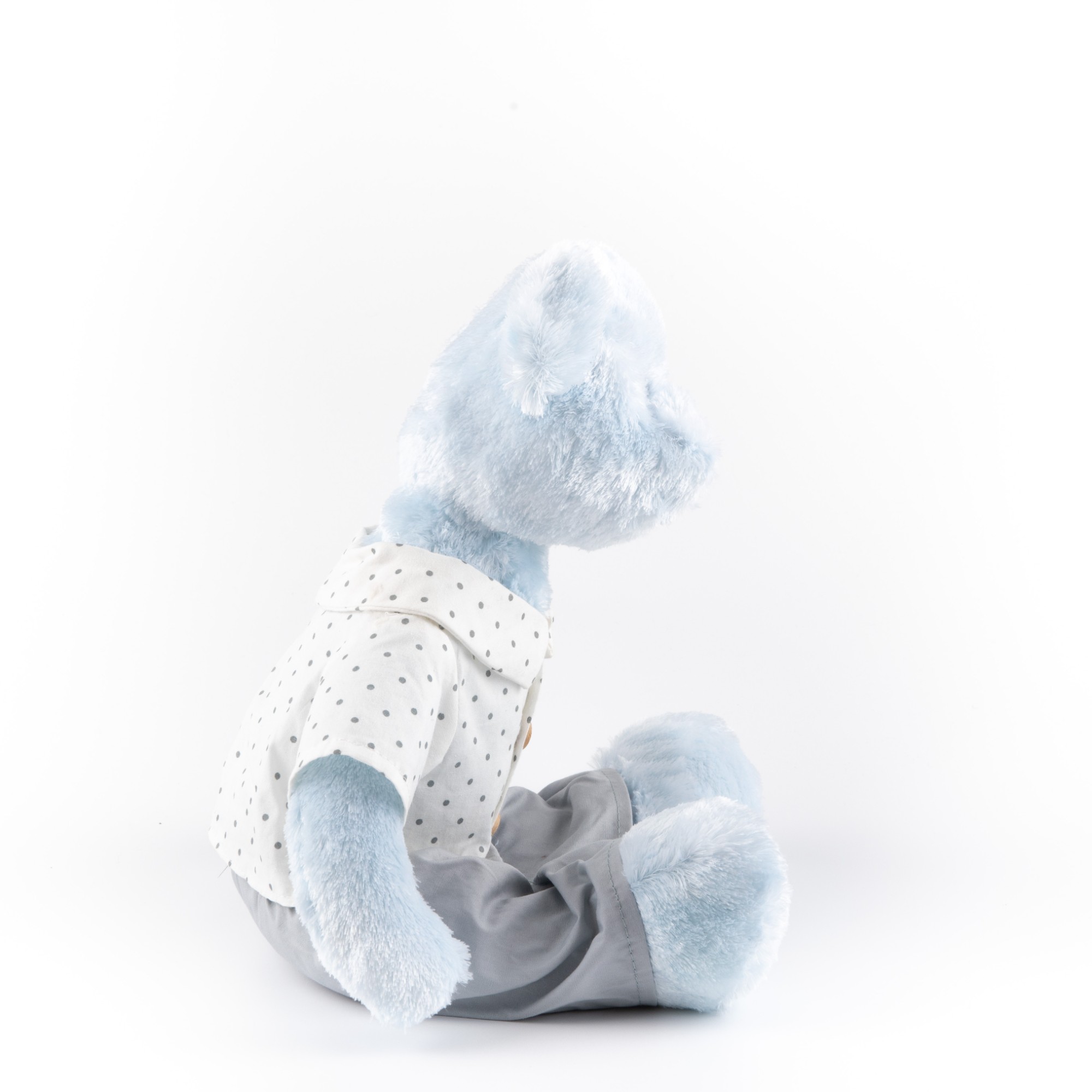 Home      Products     classic Plush toys     plush toys with clothes       Polka Dot Outfit Teddy Bear Plush