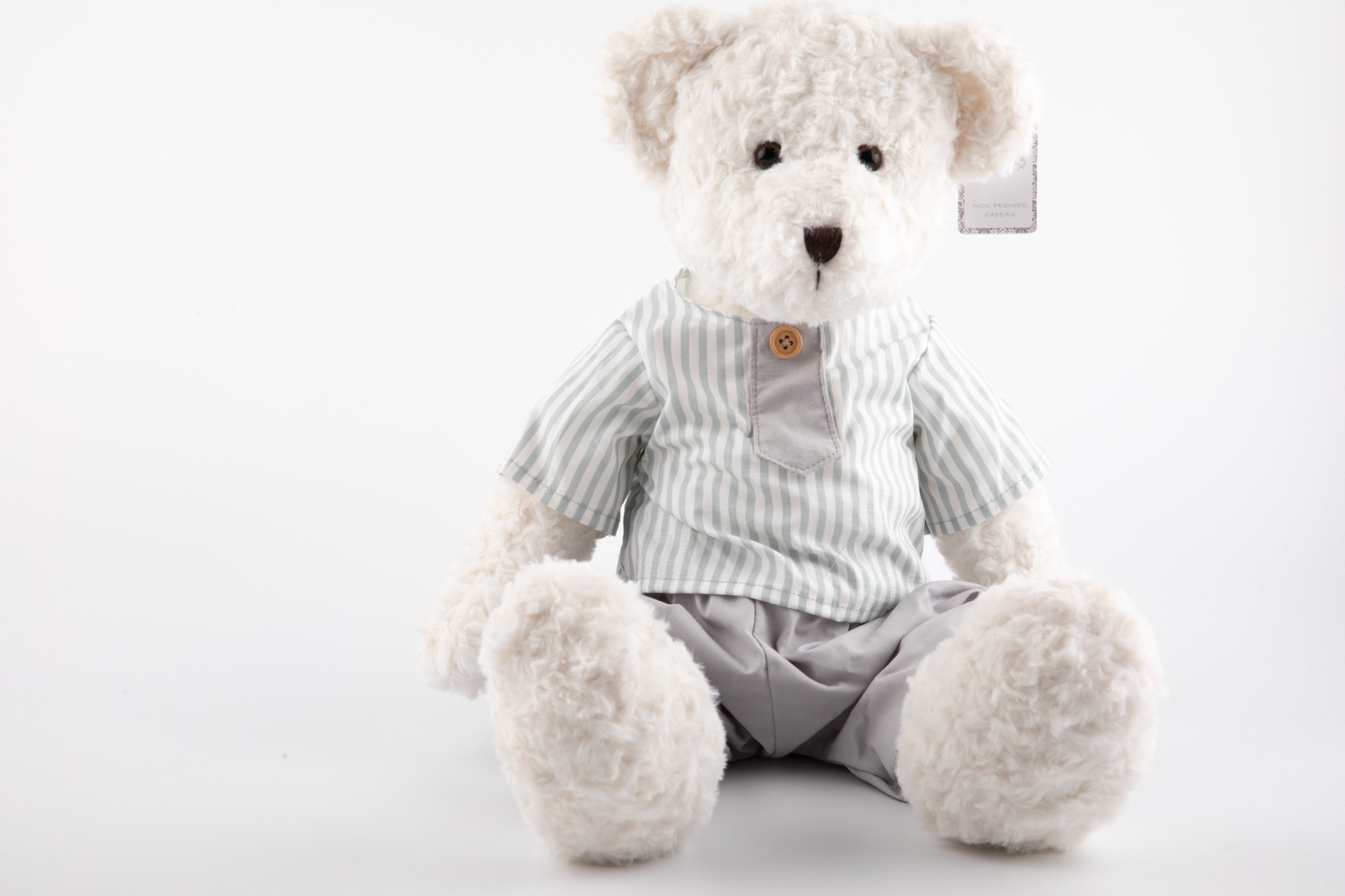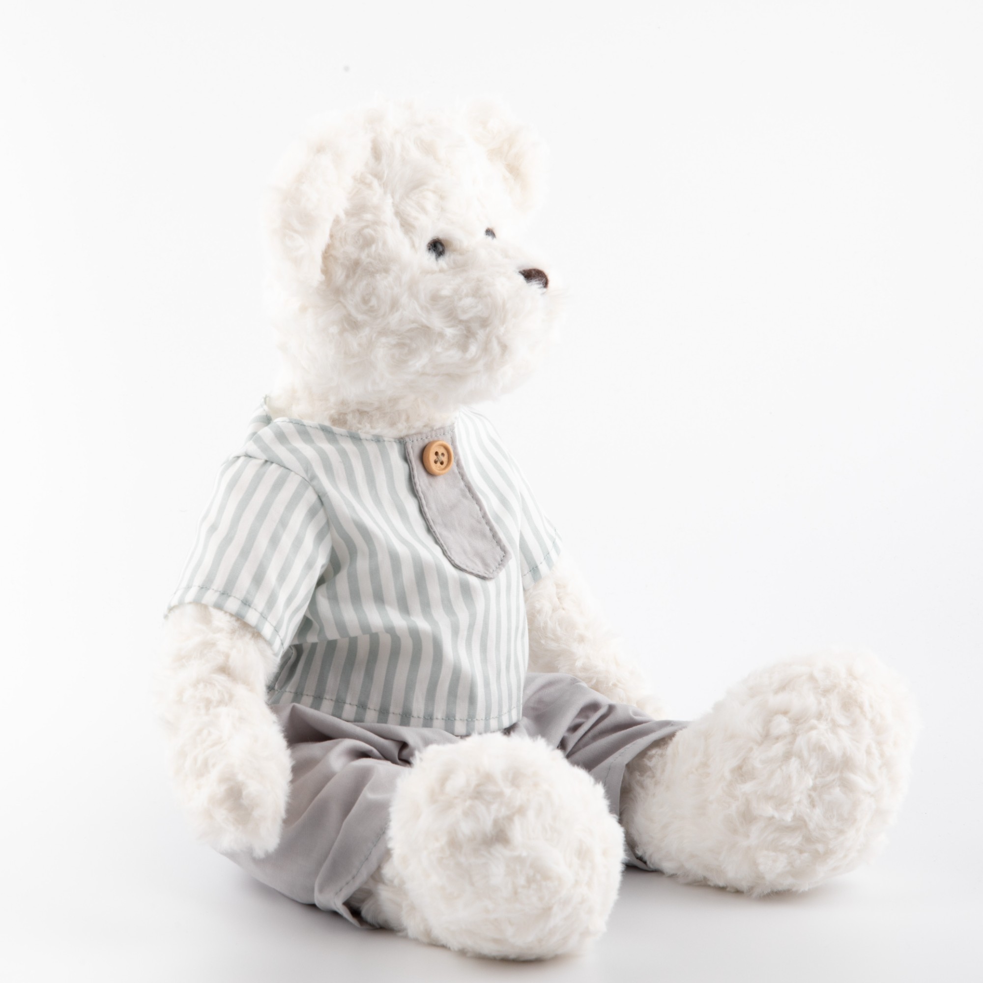 • Striped Teddy Bear, White Bear Stuffed Toy